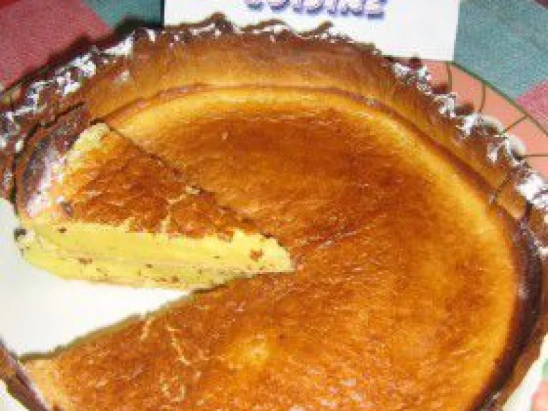 6 Pour the hot milk into the egg mixture. Stir well. Pour this mixture into the tart case.