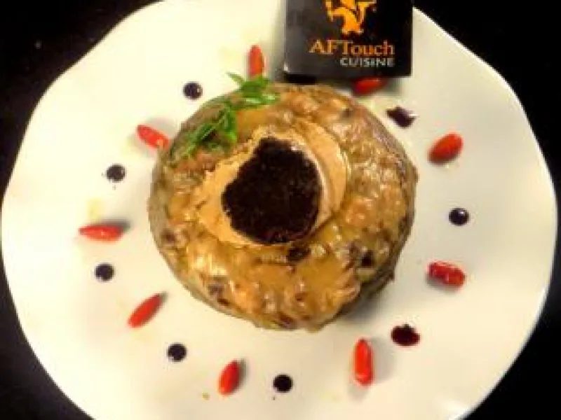 - 200 g of cooked foie gras block (100 +100) or 100 g of block and 4 slices of 30 g fresh pan-fried foie gras