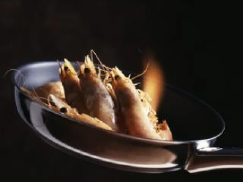 5/ Collect the prawn juice then put it in a saucepan with the white wine and shells. bring to a simmer.