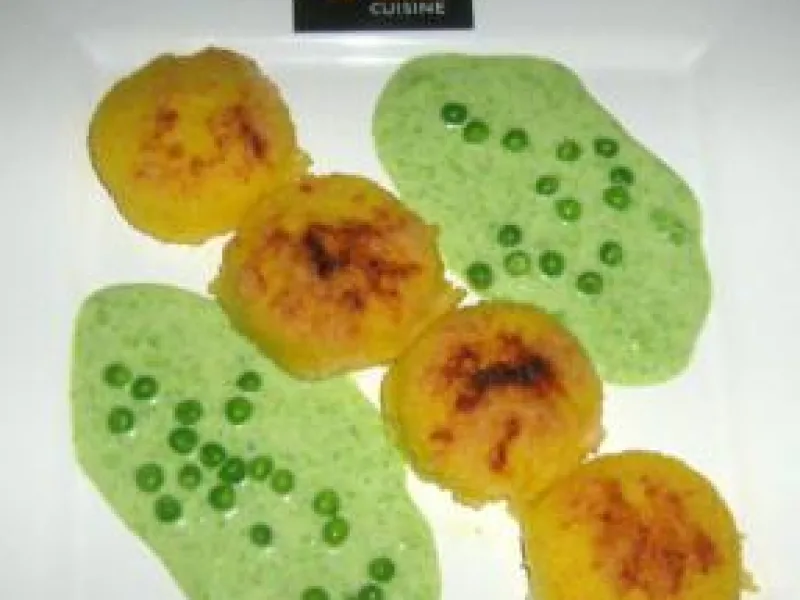 Finishing: Arrange harmoniously on your plates the gratinéed gnocchi and their "Clamart" cream* around.