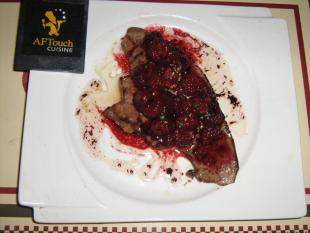 - All 3 flavors are well present: the tender flesh of calf's liver, the sweet and tangy taste of raspberries and the hint of acidity provided by balsamic vinegar.