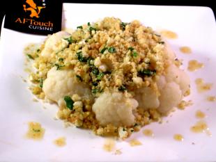 6 In a large pan, melt your butter, then when it becomes almost "hazelnut" colored (light ochre) quickly add your breadcrumbs, just give a turn of the pan, then off the heat add your chopped parsley and pour boiling over your cauliflower bouquets a dash of vinegar and a good grind of pepper mill and enjoy without waiting.