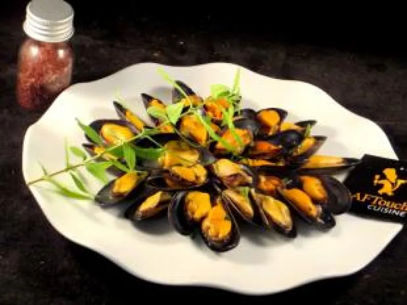 1 In a large saucepan, place your mussels, your finely sliced shallots, your cream, your white wine, salt (lightly) and pepper from the mill, cover and let your mussels open.