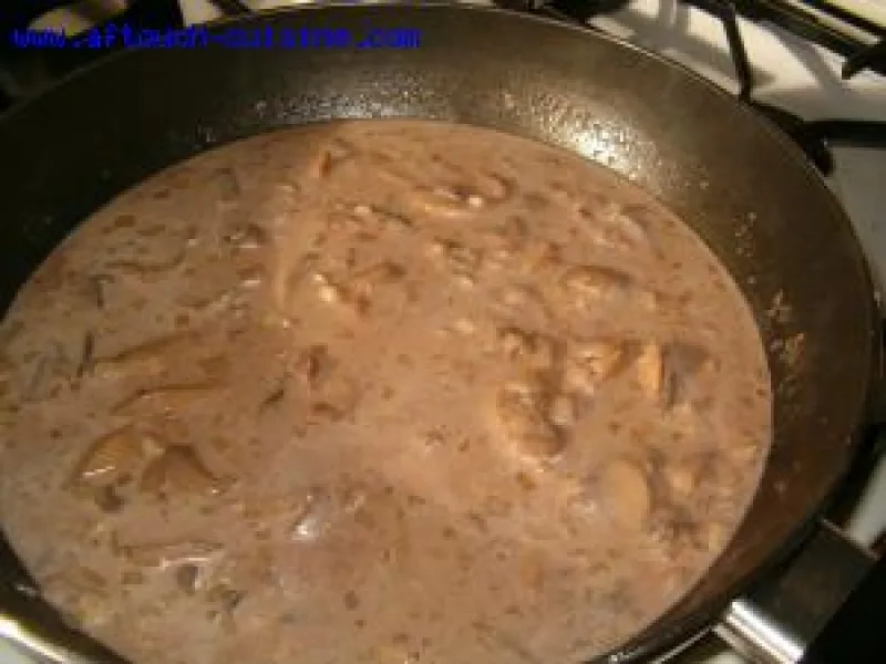 4/ Cook over low heat for a few moments and add the crème fraîche. Reduce by half.