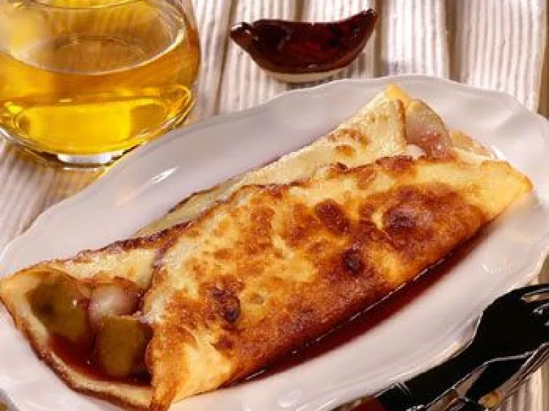 on fait une omelette sucrée et au milieu les cerises + 2 petits carrés de caramel puis on la roule et on sert autour un petit coulis de fruits par exemple