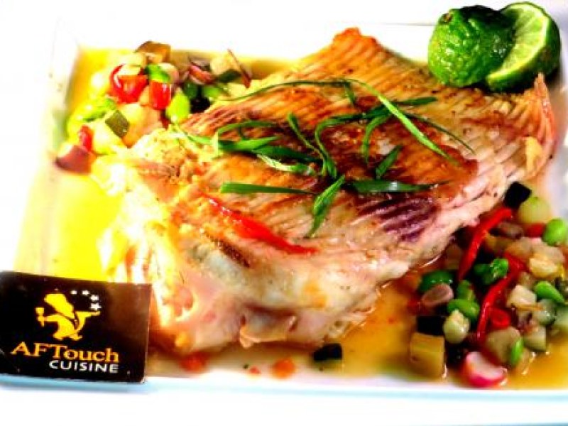 Sur des assiettes très chaudes(important) installez au centre votre ailes de raie, installez autour vos petits légumes et au dernier moment versez quelques gouttes de jus de combava sur chaque aile.