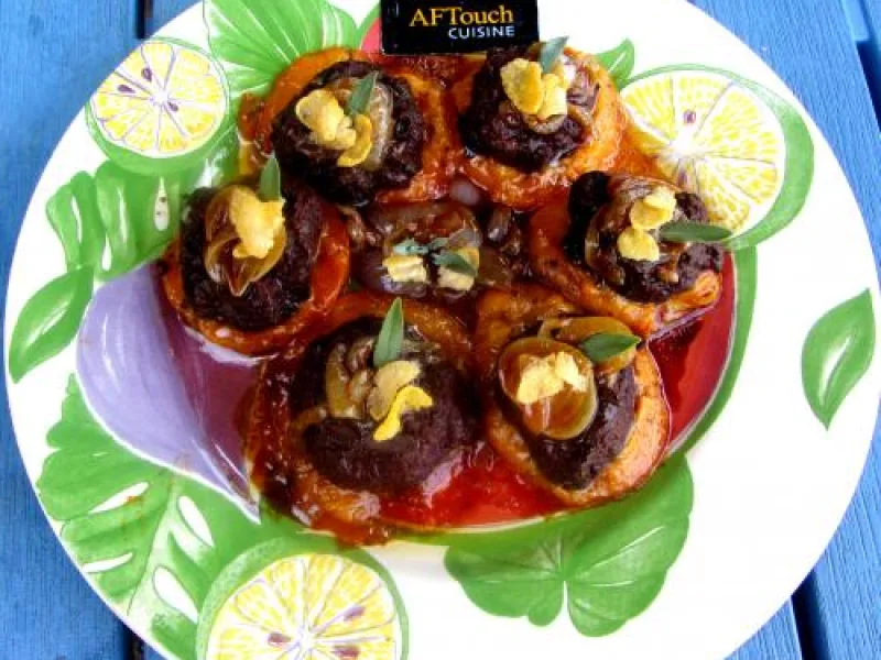 4- Alors, prenez un peu de vos oignons confits et posez le sur chaque coque de boudin.