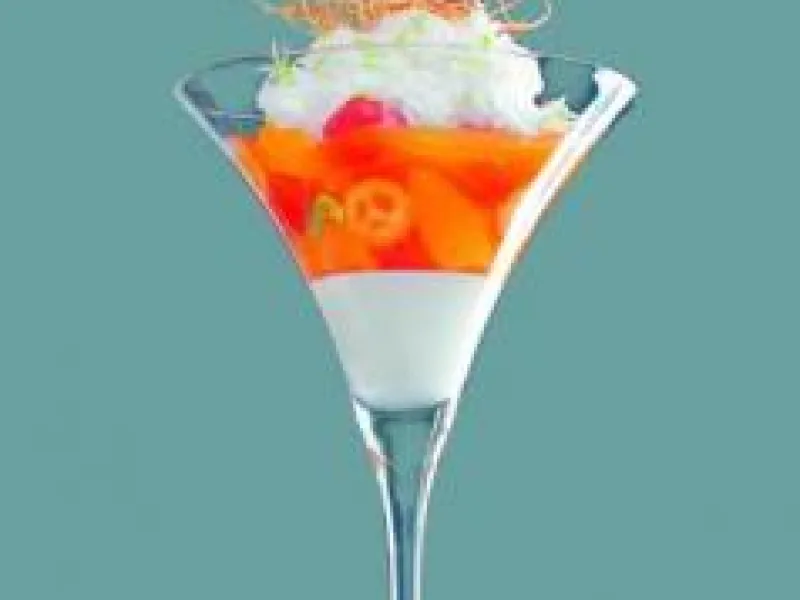 Mettre le mélange aux fruits dans les verres, sur la gelée d'orgeat. Recouvrir avec le reste de gelée