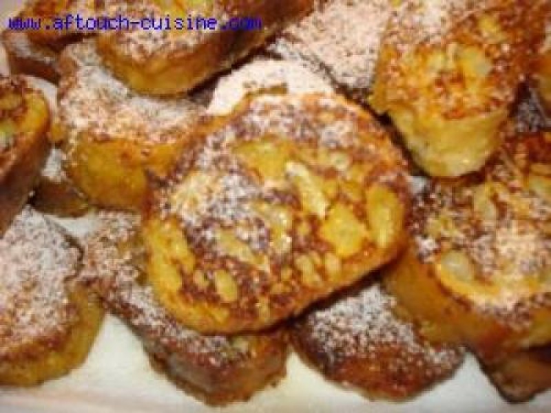 4- Faites fondre un peu de beurre dans une grande poêle puis passez vos tranches dans vos oeufs faites-les dorer sur chaque face puis sucrez du sucre de votre choix .