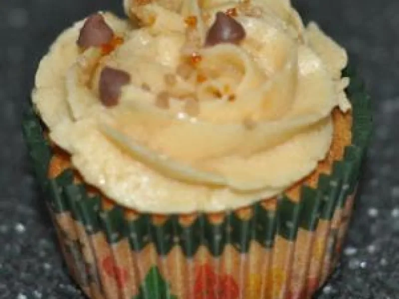 Pour un petit effet craquant en bouche, j'ai parsemé mes cupcakes d'éclats de caramel sur le dessus...et pour les plus gourmands, vous pouvez ajouter une petite sauce caramel.