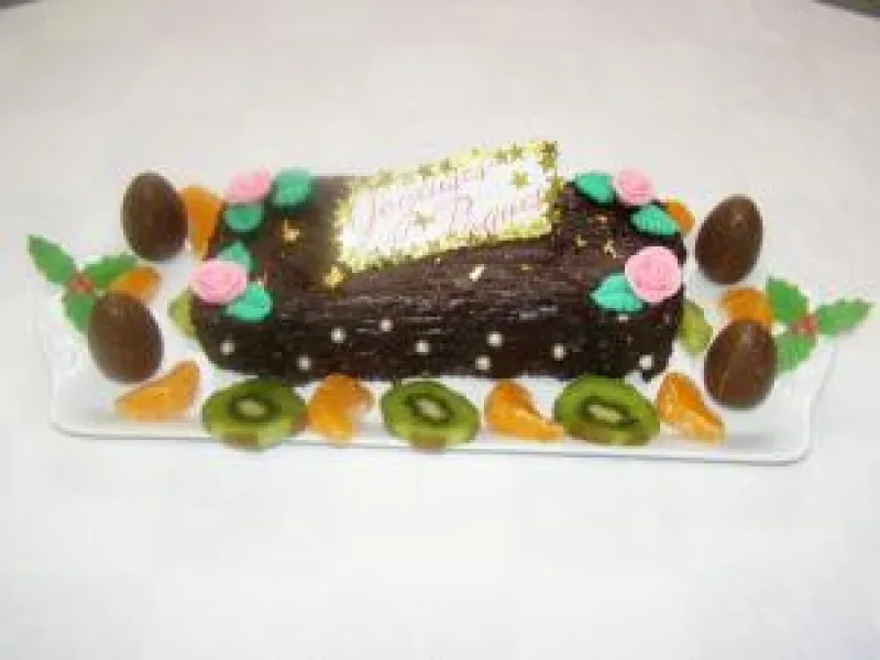- œufs en chocolat, feuilles d'or et fruits de saison
