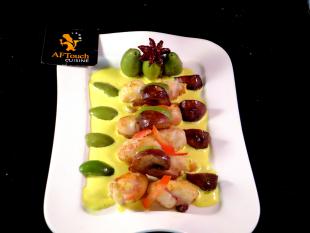 Dressez harmonieusement sur assiette chaude la crème de badiane autour.