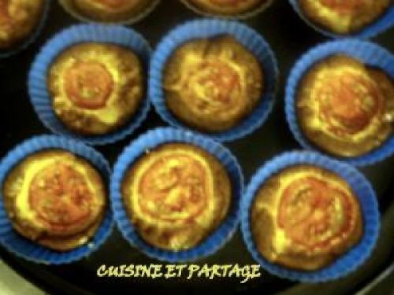 3- Mélanger les œufs, la crème, le sel, poivre et parmesan. Dans les moules, disposer au fond d'une rondelle de tomate, disperser le crabe dans le ramequin, verser la préparation crème + œufs + parmesan et terminer par une rondelle de tomate ainsi de suite avec les autres moules.